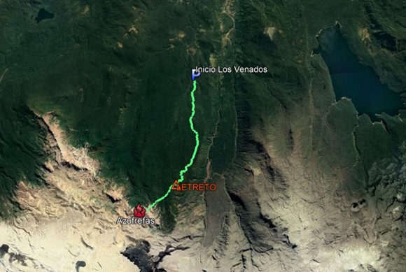 El trayecto desde el punto de inicio hasta las fumarolas en las azufreras es de 12km, el trekking tiene una extensión total de 24km, durante el recorrido se efectuarán charlas de conservación, flora y fauna, y no deje rastro, iniciaremos la actividad a las 06.00 am, saliendo de Valdivia, y programamos nuestro regreso a eso de las 21.00 horas.